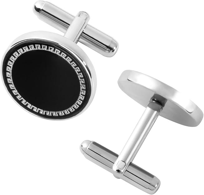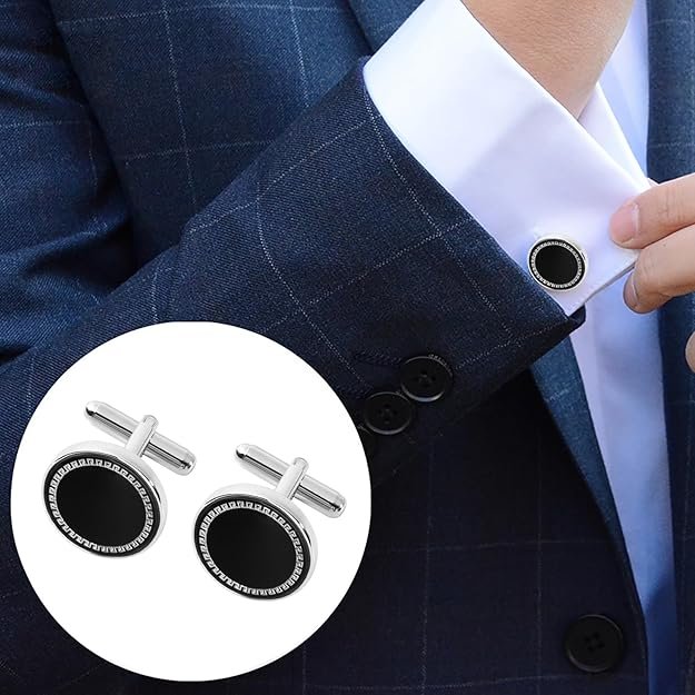 - PERFECT MAN’S JEWELRY COLLECTION:1 Pairs Cufflinks Elegant and Handsome Looking, Classic Black Cufflinks Surface,Suitable for This set matches with most of shirts.