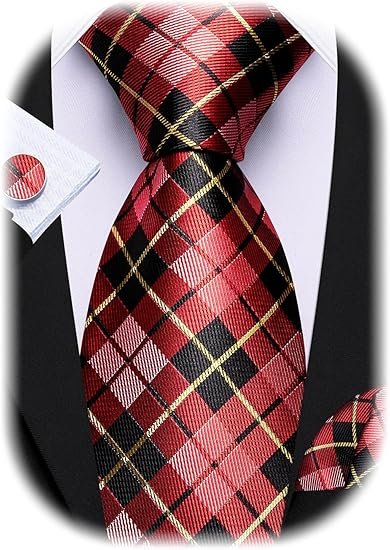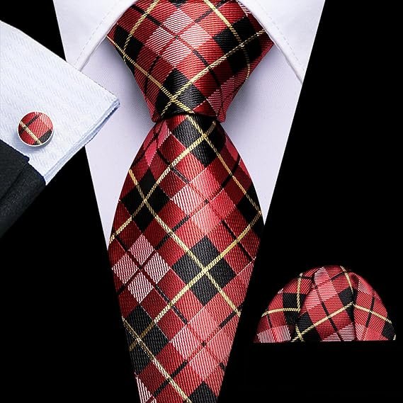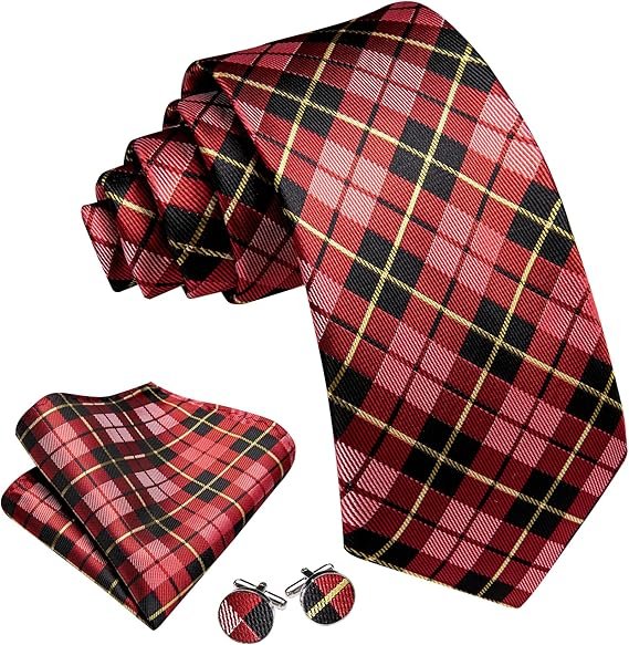 designer classic ties for men set formal pocket square cufflink check plaid(black and yellow grey) (複製)Designer Classic Ties for Men Set Formal Pocket Square Cufflink Check Plaid(Blood Red Black)